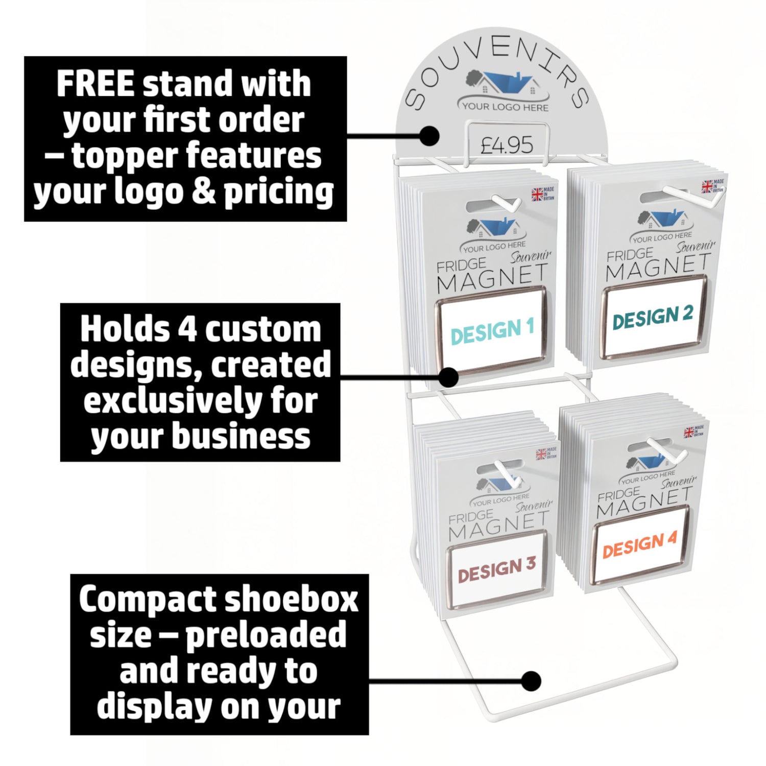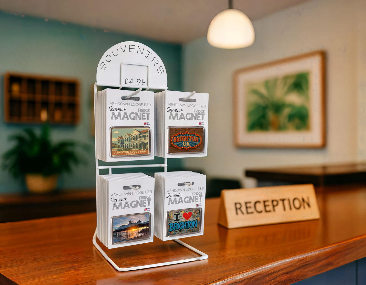 It’s exactly what it sounds like — a compact countertop display, pre-loaded with custom souvenirs designed for your B&B or guesthouse.